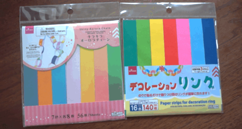 飾り付けは100円ショップで折り紙を買って長女ちゃんと制作。